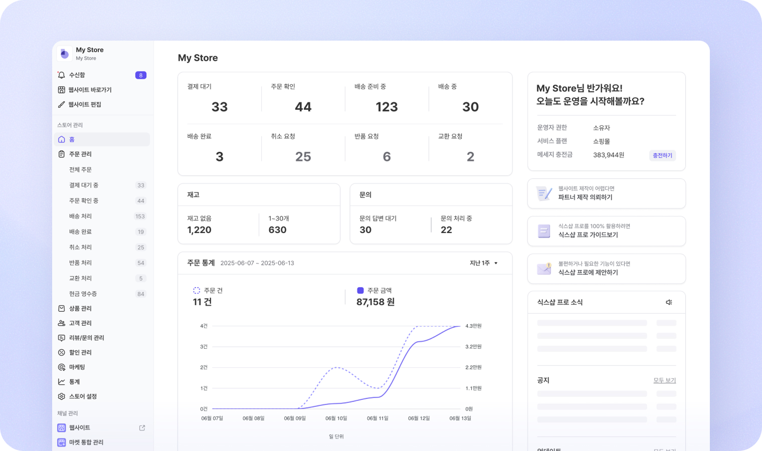 쇼핑몰부터 마케팅, 확장 기능까지 한번에